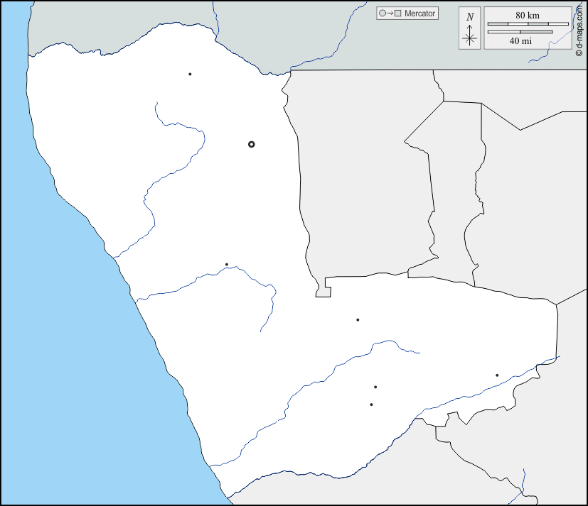 d-maps > अफ्रीका > नामीबिया > कुनेने > सीमाओं, जल-सर्वेक्षण, मुख्य शहरों