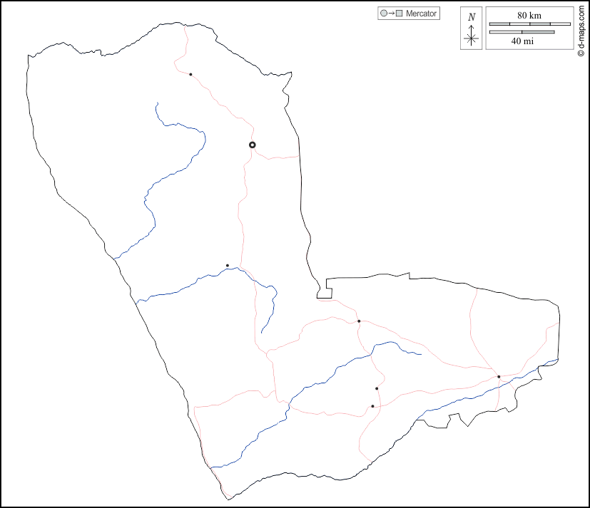 d-maps > अफ्रीका > नामीबिया > कुनेने > बाह्यरेखा, जल-सर्वेक्षण, मुख्य शहरों, सड़कों, सफेद