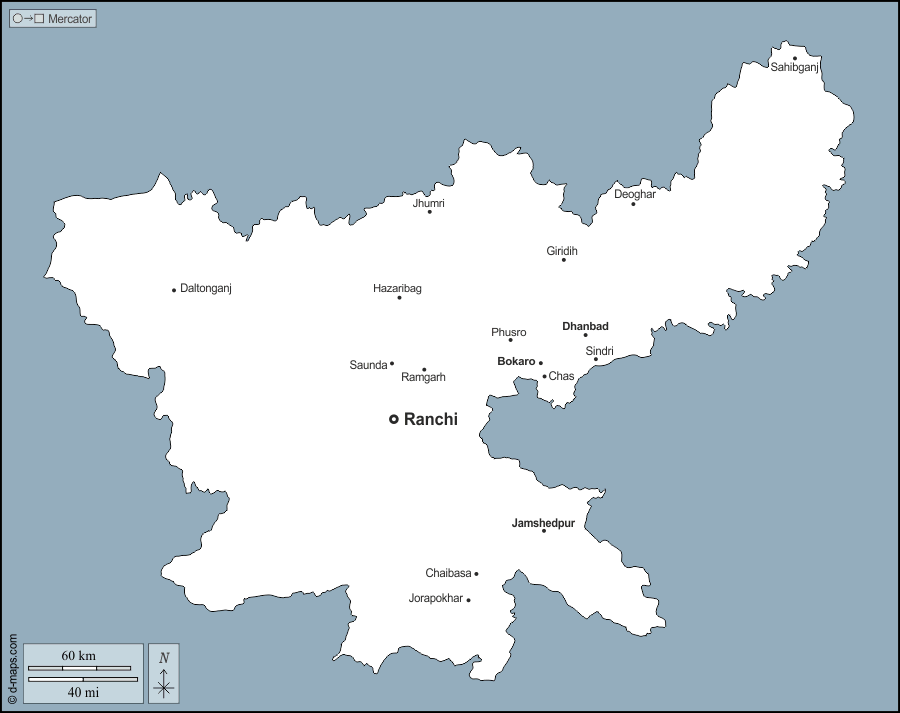 d-maps > एशिया > भारत > झारखण्ड > बाह्यरेखा, मुख्य शहरों, नाम