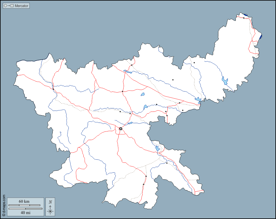 d-maps > एशिया > भारत > झारखण्ड > बाह्यरेखा, जल-सर्वेक्षण, मुख्य शहरों, सड़कों