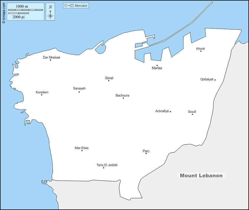 d-maps > एशिया > लेबनान > बेयरूत > सीमाओं, मुख्य शहरों, नाम