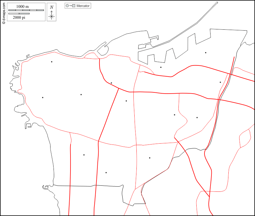 d-maps > एशिया > लेबनान > बेयरूत > सीमाओं, मुख्य शहरों, सड़कों, सफेद