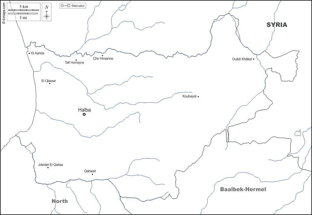 d-maps > एशिया > लेबनान > अक्कर > सीमाओं, जल-सर्वेक्षण, मुख्य शहरों, नाम, सफेद