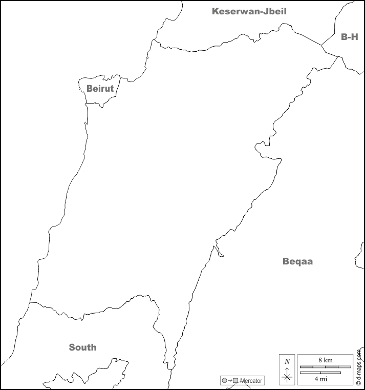 d-maps > एशिया > लेबनान > माउंट लेबनान > सीमाओं, नाम, सफेद