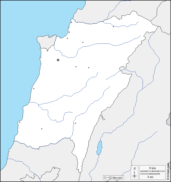 d-maps > एशिया > लेबनान > माउंट लेबनान > सीमाओं, जल-सर्वेक्षण, मुख्य शहरों