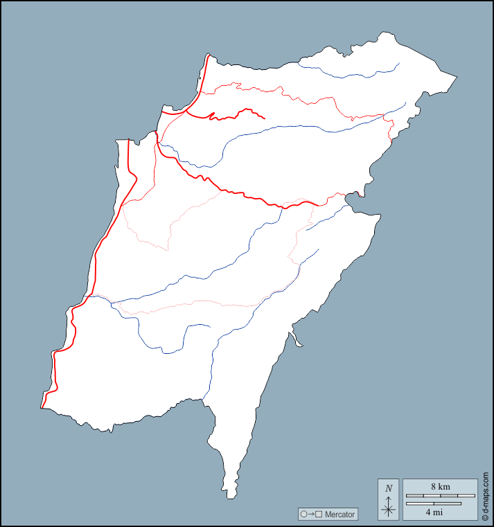 d-maps > एशिया > लेबनान > माउंट लेबनान > बाह्यरेखा, जल-सर्वेक्षण, सड़कों