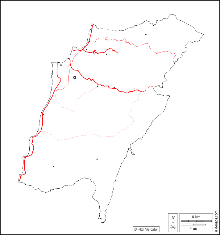 d-maps > एशिया > लेबनान > माउंट लेबनान > बाह्यरेखा, मुख्य शहरों, सड़कों, सफेद