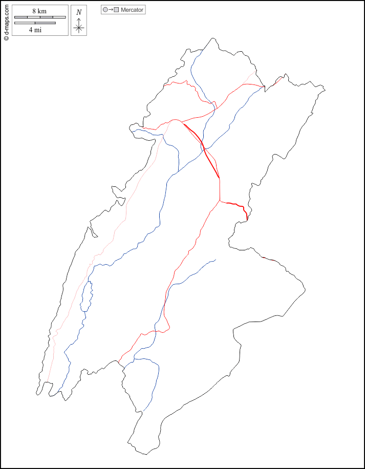 d-maps > एशिया > लेबनान > बेक़ा > बाह्यरेखा, जल-सर्वेक्षण, सड़कों, सफेद