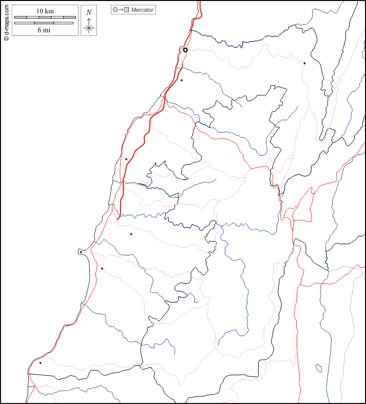 d-maps > एशिया > लेबनान > दक्षिण > सीमाओं, जल-सर्वेक्षण, मुख्य शहरों, सड़कों, सफेद