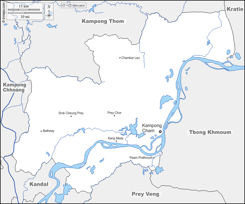 d-maps > एशिया > कंबोडिया > कम्पोंग चाम प्रान्त > सीमाओं, जल-सर्वेक्षण, मुख्य शहरों, नाम