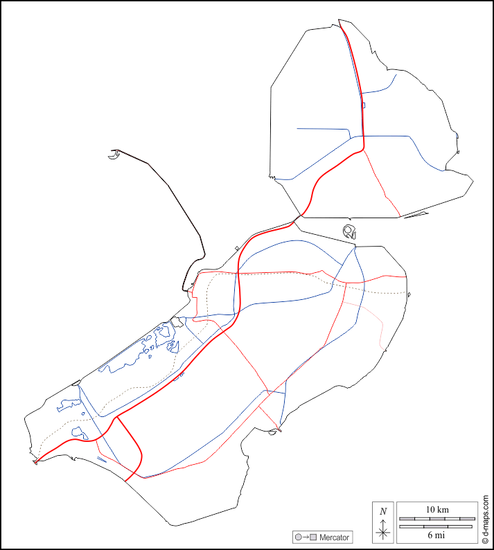 d-maps > यूरोप > नीदरलैंड > फ्लेवोलैंड > बाह्यरेखा, जल-सर्वेक्षण, सड़कों, सफेद