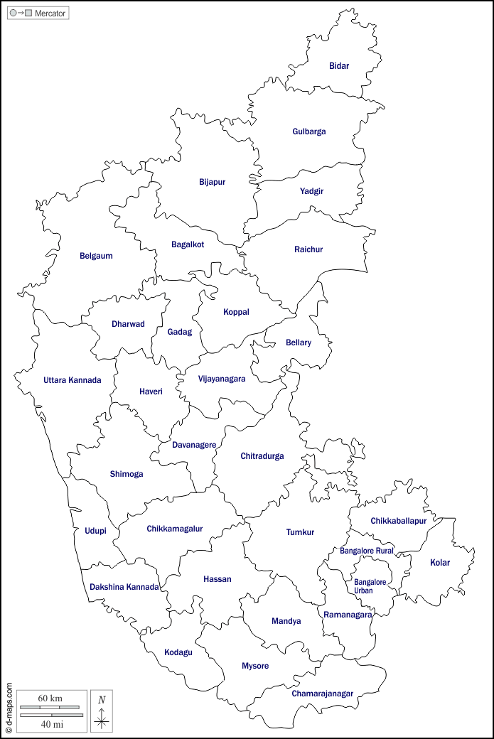 d-maps > एशिया > भारत > कर्नाटक > बाह्यरेखा, जिलों, नाम, सफेद