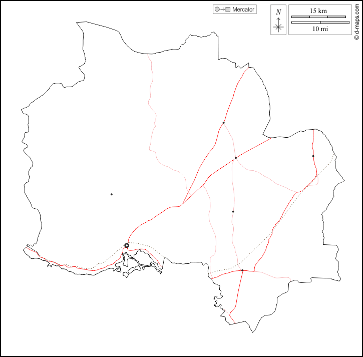 d-maps > एशिया > कंबोडिया > कम्पोत प्रान्त > बाह्यरेखा, मुख्य शहरों, सड़कों, सफेद