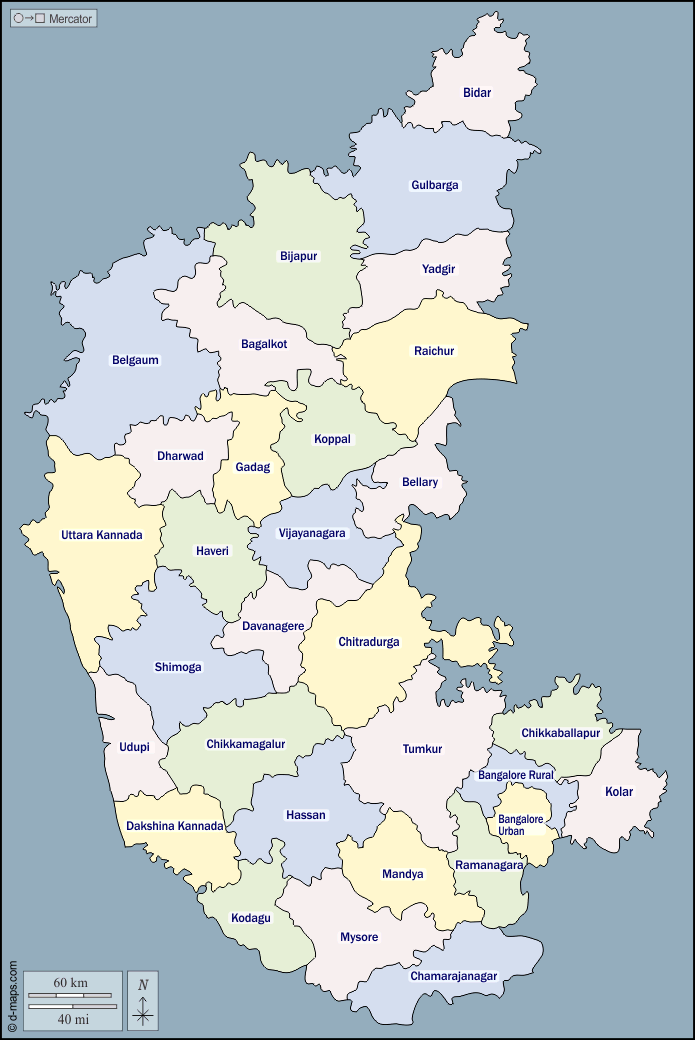 d-maps > एशिया > भारत > कर्नाटक > बाह्यरेखा, जिलों, नाम, रंग
