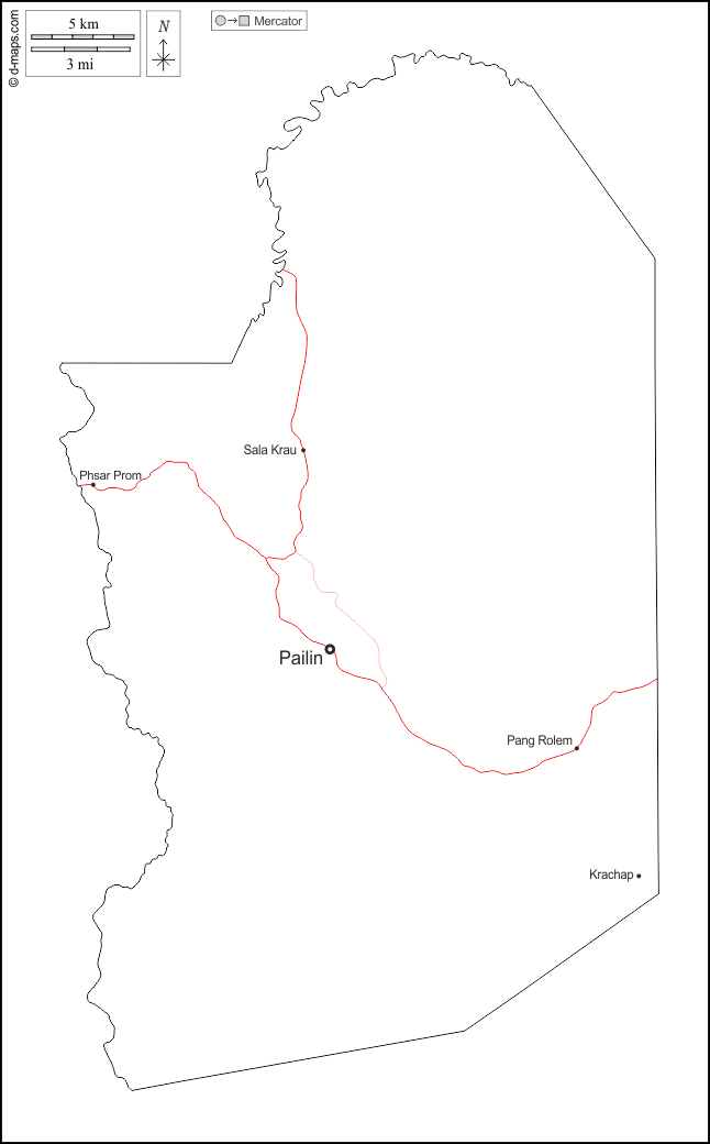 d-maps > एशिया > कंबोडिया > पइलिन प्रान्त > बाह्यरेखा, मुख्य शहरों, सड़कों, नाम, सफेद