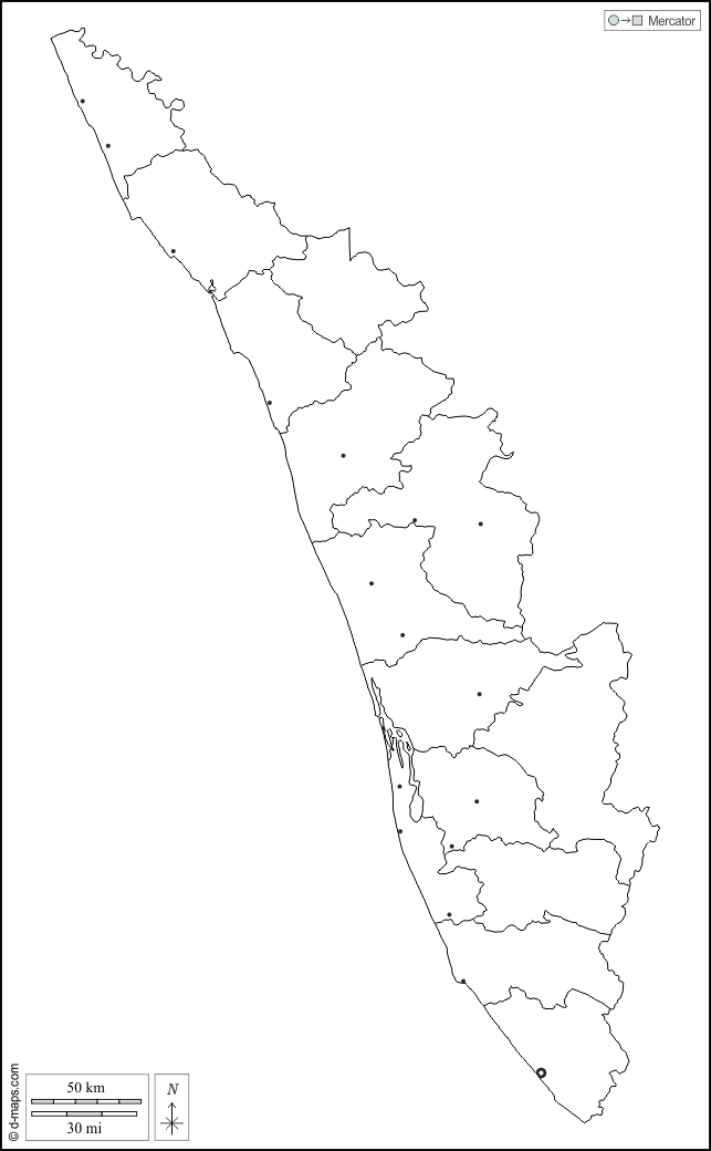 d-maps > एशिया > भारत > केरल > बाह्यरेखा, जिलों, मुख्य शहरों, सफेद