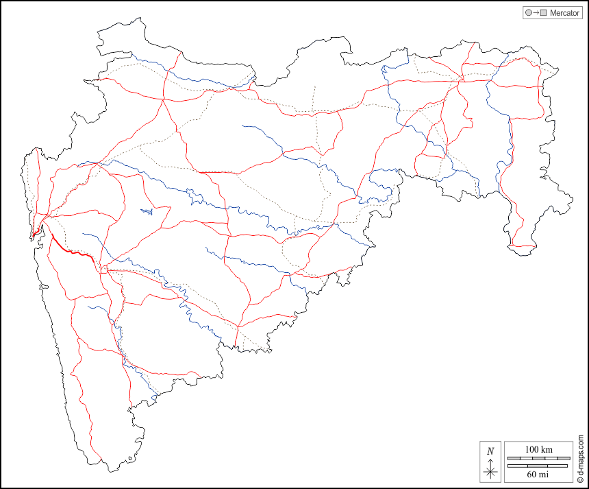 d-maps > एशिया > भारत > महाराष्ट्र > बाह्यरेखा, जल-सर्वेक्षण, सड़कों, सफेद