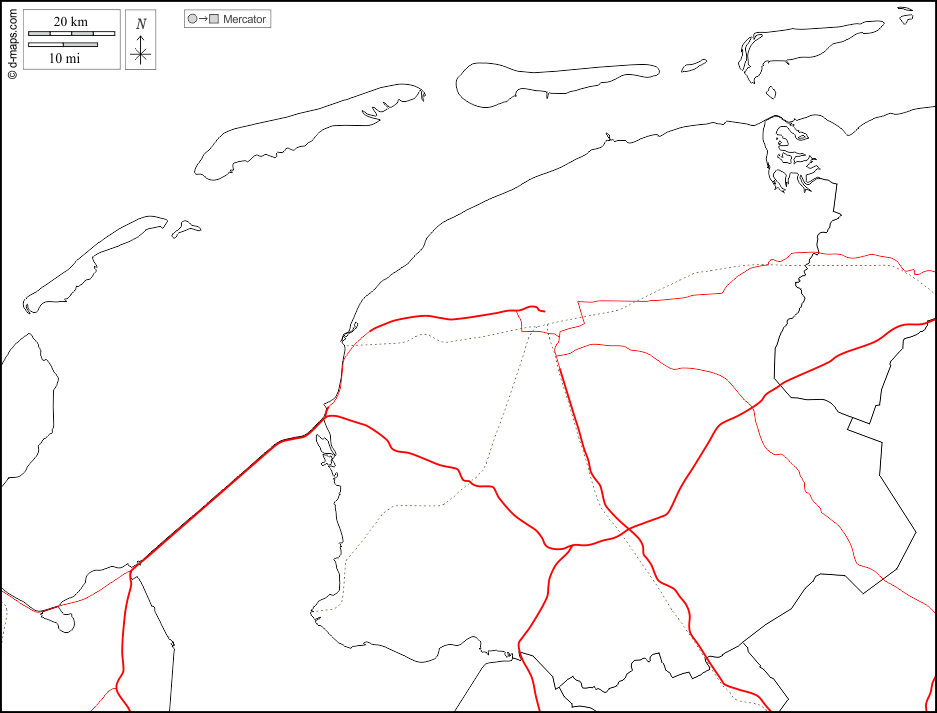 d-maps > यूरोप > नीदरलैंड > फ्रिज़लैंड > सीमाओं, सड़कों, सफेद