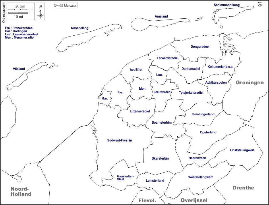 d-maps > यूरोप > नीदरलैंड > फ्रिज़लैंड > सीमाओं, नगर पालिकाओं, नाम, सफेद