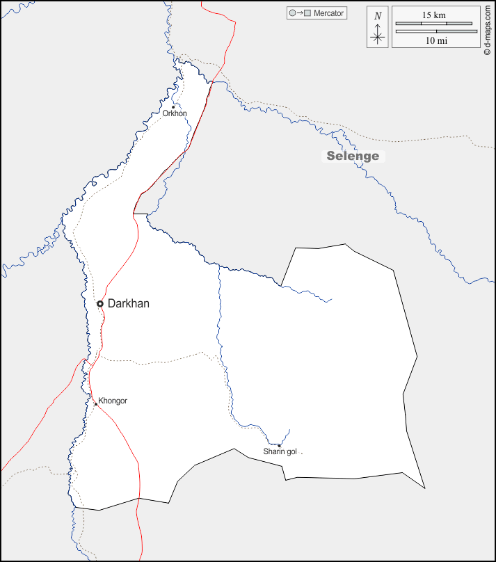 d-maps > एशिया > मंगोलिया > दरख़ान-ऊल प्रांत > सीमाओं, जल-सर्वेक्षण, मुख्य शहरों, सड़कों, नाम
