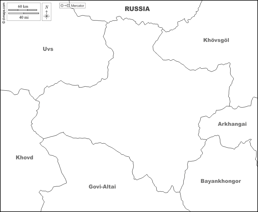 d-maps > एशिया > मंगोलिया > ज़वख़ान प्रांत > सीमाओं, नाम, सफेद