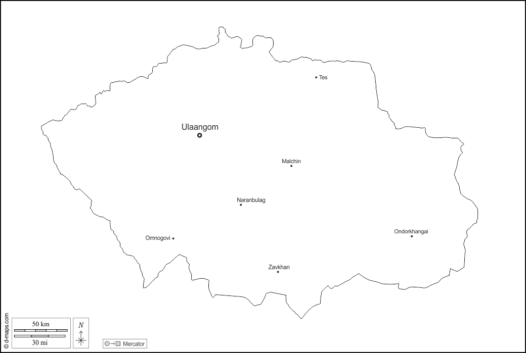 d-maps > एशिया > मंगोलिया > उव्स प्रांत > बाह्यरेखा, मुख्य शहरों, नाम, सफेद