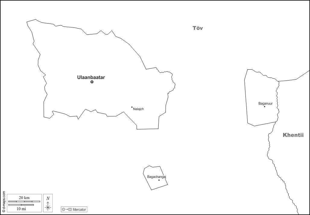 d-maps > एशिया > मंगोलिया > उलान बतोर > सीमाओं, मुख्य शहरों, नाम, सफेद