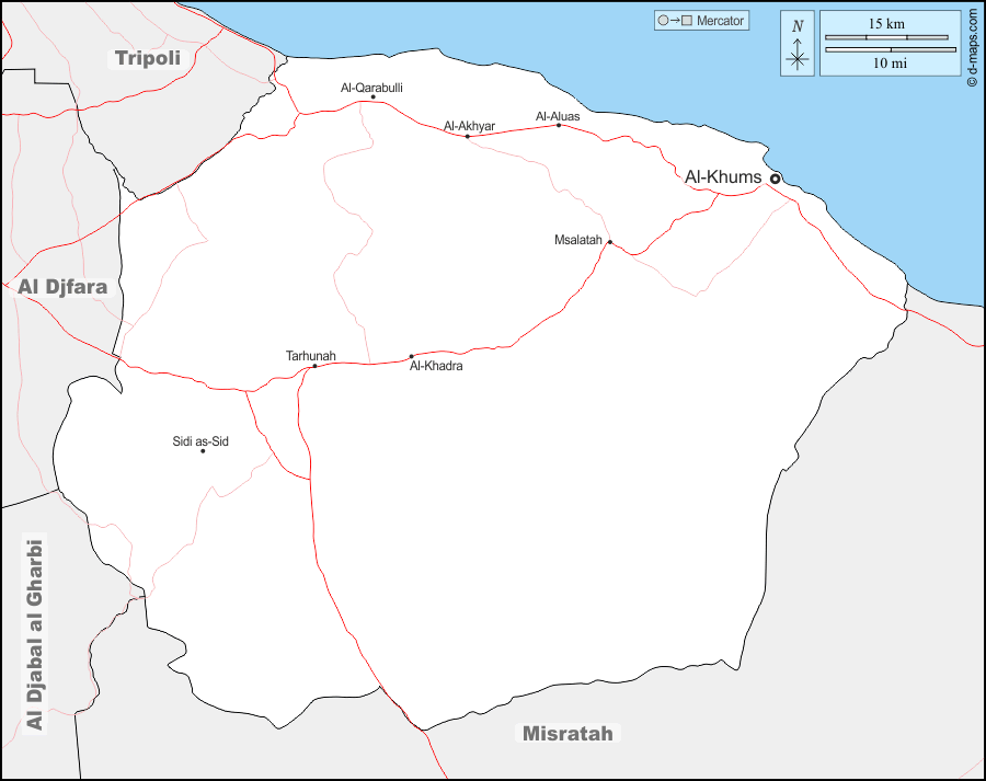 d-maps > अफ्रीका > लीबिया > मुर्कुब > सीमाओं, मुख्य शहरों, सड़कों, नाम
