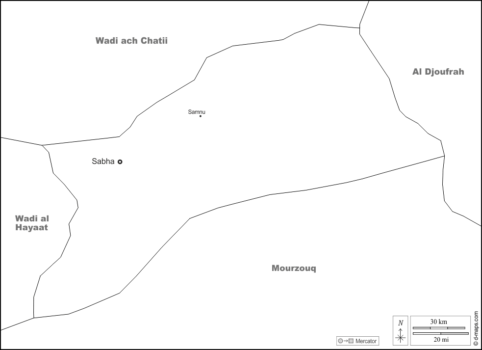 d-maps > अफ्रीका > लीबिया > सभा > सीमाओं, मुख्य शहरों, नाम, सफेद
