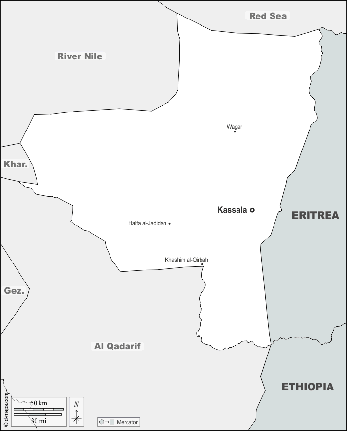 d-maps > अफ्रीका > सूडान > कसाला > सीमाओं, मुख्य शहरों, नाम
