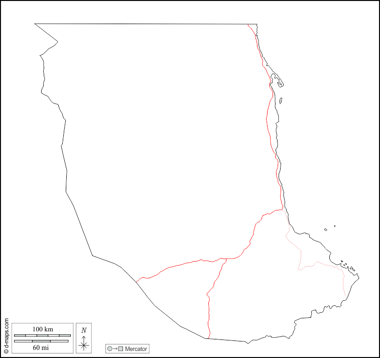 d-maps > अफ्रीका > सूडान > लाल सागर > बाह्यरेखा, सड़कों, सफेद