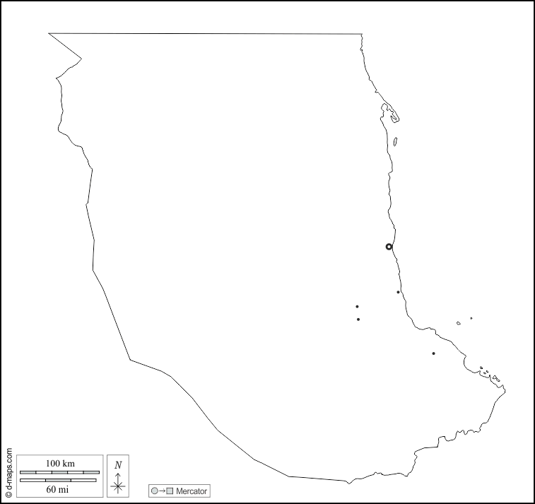 d-maps > अफ्रीका > सूडान > लाल सागर > बाह्यरेखा, मुख्य शहरों, सफेद