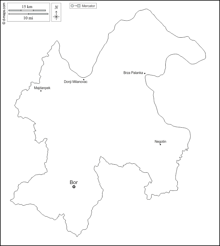 d-maps > यूरोप > सर्बिया > बोर जिला > बाह्यरेखा, मुख्य शहरों, नाम, सफेद