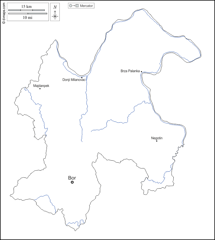 d-maps > यूरोप > सर्बिया > बोर जिला > बाह्यरेखा, जल-सर्वेक्षण, मुख्य शहरों, नाम, सफेद