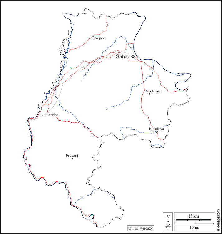 d-maps > यूरोप > सर्बिया > मक्वा > बाह्यरेखा, जल-सर्वेक्षण, मुख्य शहरों, सड़कों, नाम, सफेद