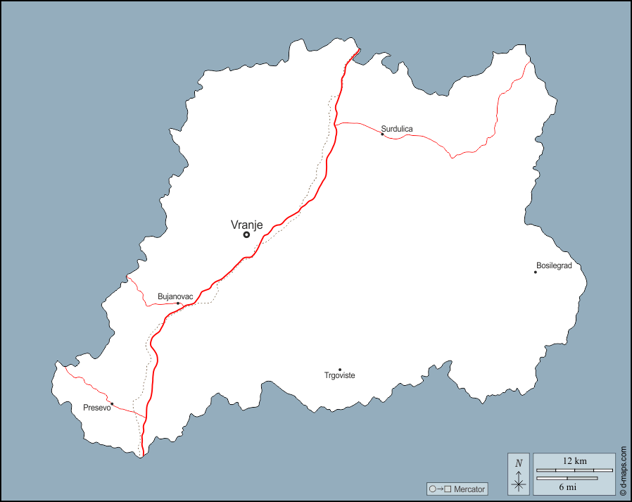 d-maps > यूरोप > सर्बिया > प्सिंजा > बाह्यरेखा, मुख्य शहरों, सड़कों, नाम