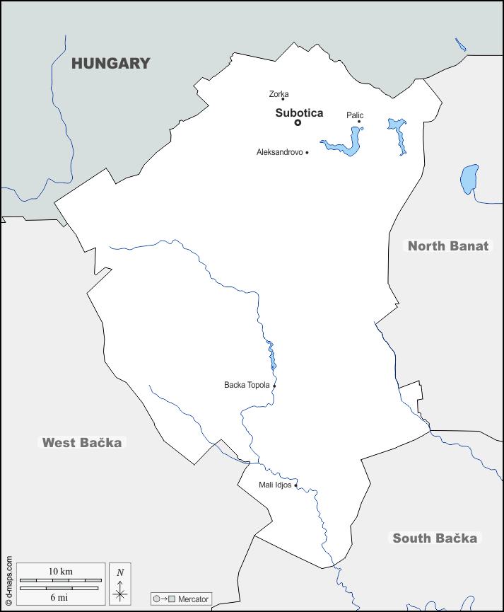 d-maps > यूरोप > सर्बिया > उत्तरी बाक्का > सीमाओं, जल-सर्वेक्षण, मुख्य शहरों, नाम
