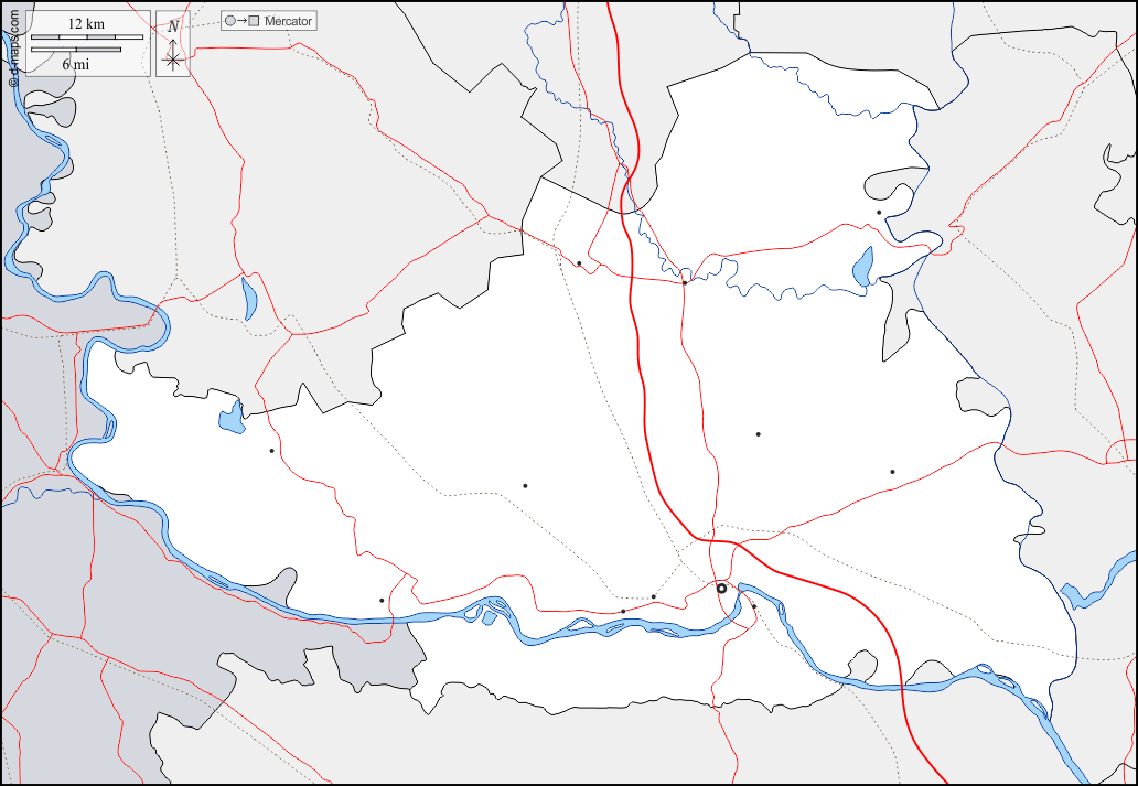 d-maps > यूरोप > सर्बिया > दक्षिण बाक्का > सीमाओं, जल-सर्वेक्षण, मुख्य शहरों, सड़कों