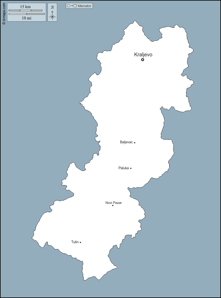 d-maps > यूरोप > सर्बिया > रास्का > बाह्यरेखा, मुख्य शहरों, नाम