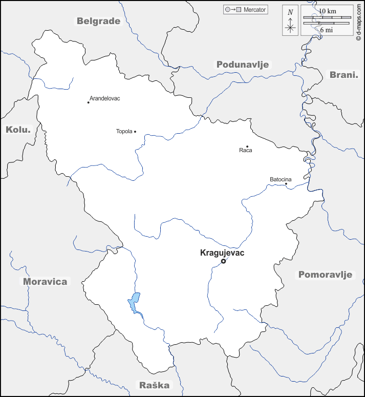 d-maps > यूरोप > सर्बिया > सुमादिजा > सीमाओं, जल-सर्वेक्षण, मुख्य शहरों, नाम