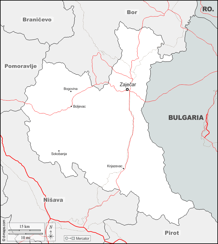 d-maps > यूरोप > सर्बिया > ज़जेकर > सीमाओं, मुख्य शहरों, सड़कों, नाम