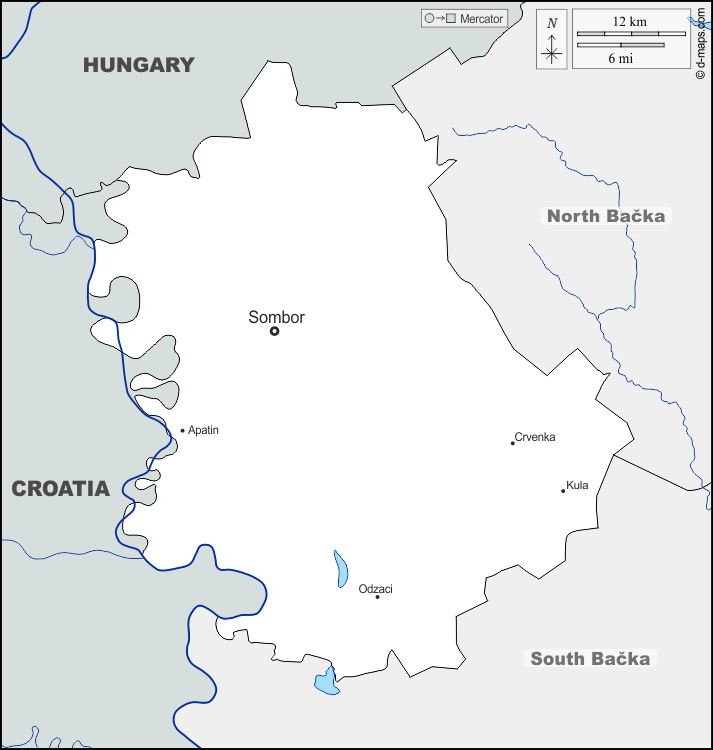 d-maps > यूरोप > सर्बिया > पश्चिमी बाक्का > सीमाओं, जल-सर्वेक्षण, मुख्य शहरों, नाम