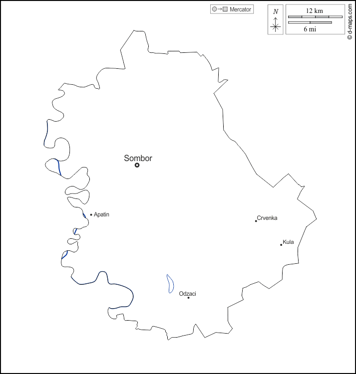 d-maps > यूरोप > सर्बिया > पश्चिमी बाक्का > बाह्यरेखा, जल-सर्वेक्षण, मुख्य शहरों, नाम, सफेद