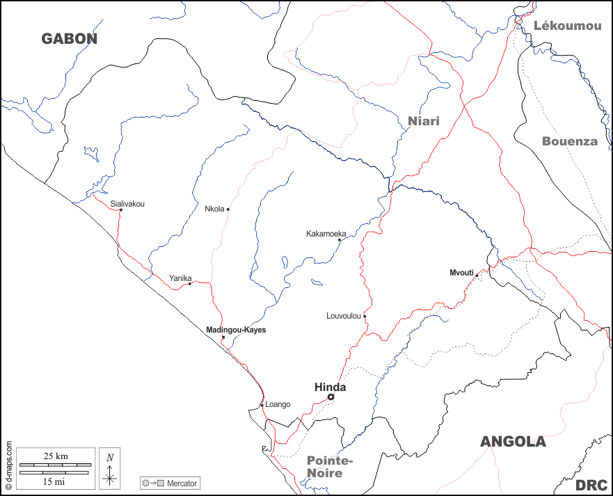 d-maps > अफ्रीका > कांगो > कोइलौ विभाग > सीमाओं, जल-सर्वेक्षण, मुख्य शहरों, सड़कों, नाम, सफेद