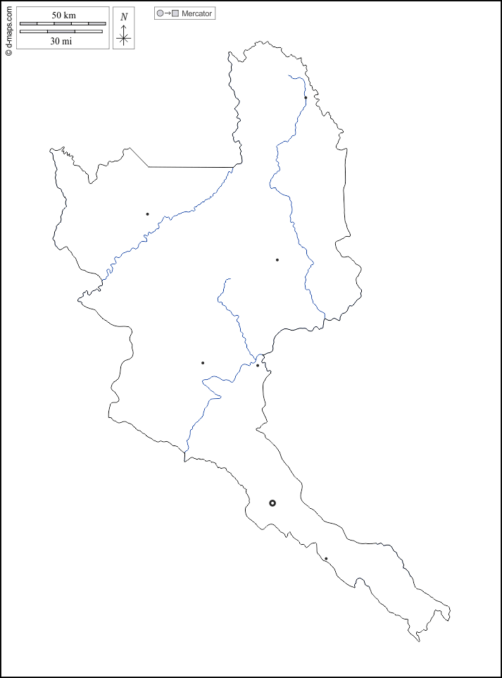d-maps > अफ्रीका > कांगो > नियारी विभाग > बाह्यरेखा, जल-सर्वेक्षण, मुख्य शहरों, सफेद