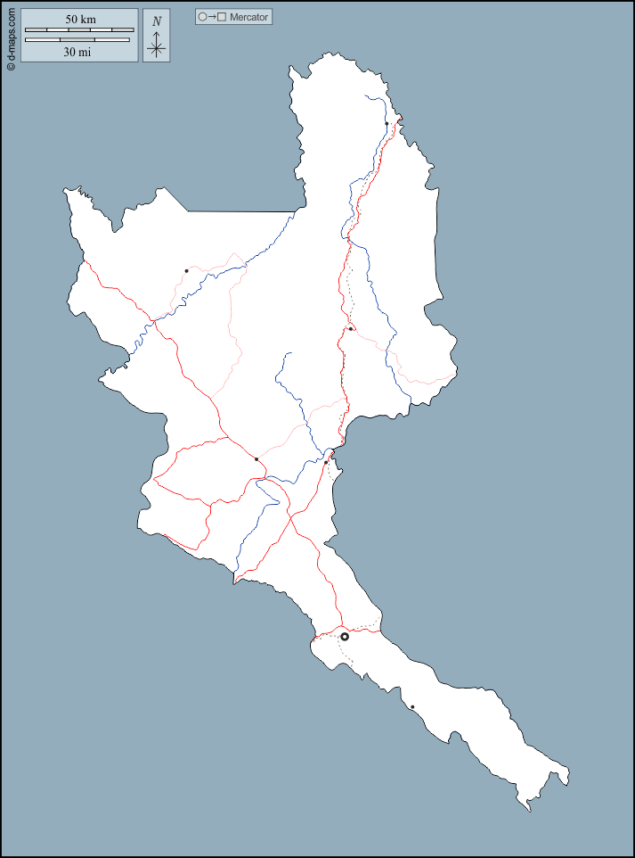 d-maps > अफ्रीका > कांगो > नियारी विभाग > बाह्यरेखा, जल-सर्वेक्षण, मुख्य शहरों, सड़कों