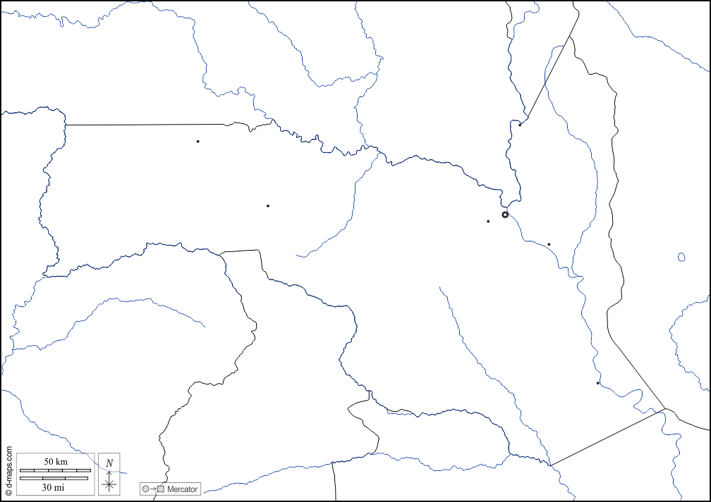 d-maps > अफ्रीका > कांगो > संघ विभाग > सीमाओं, जल-सर्वेक्षण, मुख्य शहरों, सफेद