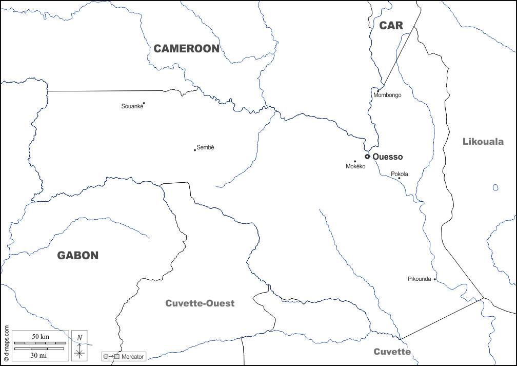d-maps > अफ्रीका > कांगो > संघ विभाग > सीमाओं, जल-सर्वेक्षण, मुख्य शहरों, नाम, सफेद
