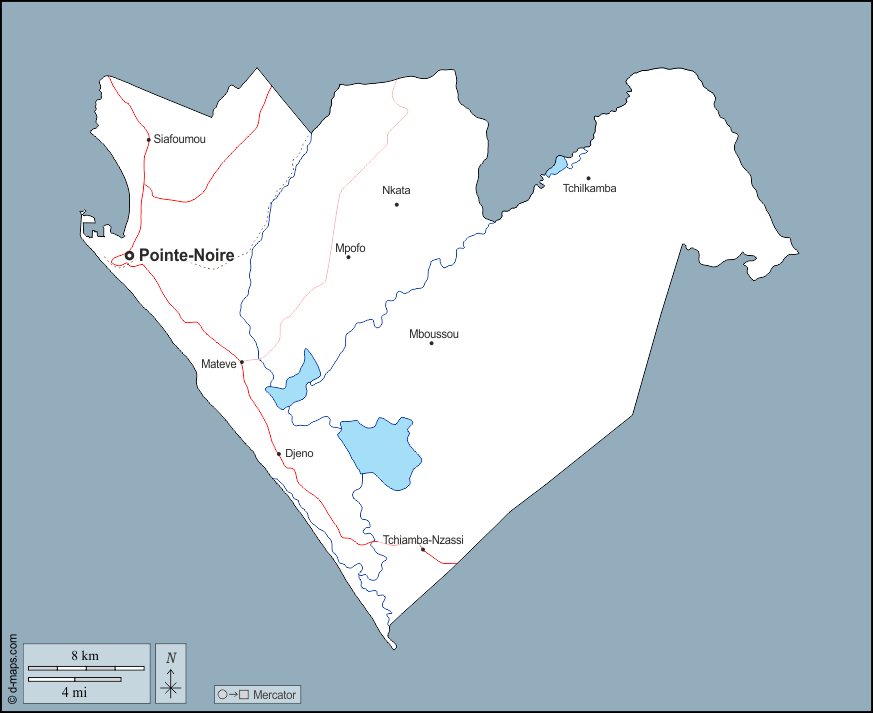 d-maps > अफ्रीका > कांगो > पॉइंट-नोइरे > बाह्यरेखा, जल-सर्वेक्षण, मुख्य शहरों, सड़कों, नाम