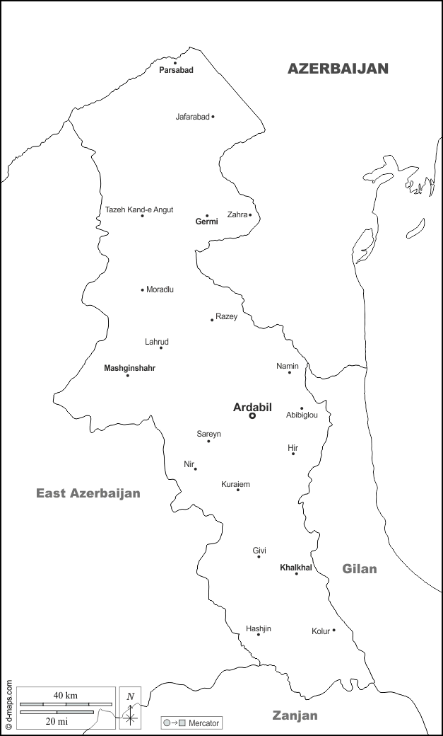 d-maps > एशिया > ईरान > अर्दबील प्रांत > सीमाओं, मुख्य शहरों, नाम, सफेद
